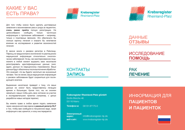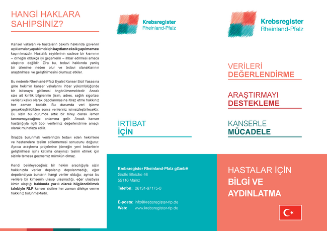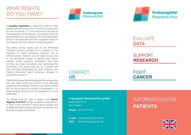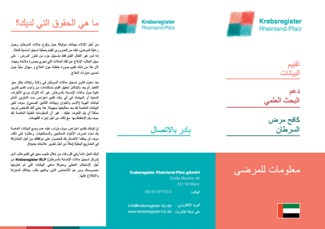In unserem verständlichen Patientenflyer finden Sie alle Informationen, die für Sie als Patient in Bezug auf das Krebsregister wichtig sind. Er ist in 7 Sprachen verfügbar.