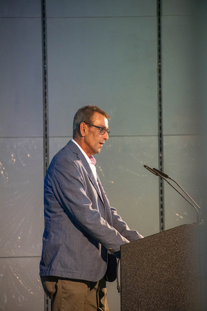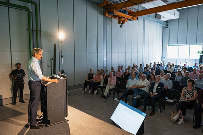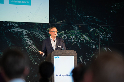 In der darauffolgenden Keynote von Prof. Dr. Andreas Dengel, Leiter des Deutschen Forschungszentrum für Künstliche Intelligenz, wurde den Anwesenden ein Ausblick auf die Chancen und Potenziale von KI im Gesundheitswesen gegeben. Dengel erklärte, dass KI in der medizinischen Praxis zunehmend an Bedeutung gewinnt. Anhand der Analyse von Lebendzellen machte er deutlich, dass KI bei der Erstellung von Datenmaterial genutzt werden kann, um die Analyse des Bildmaterials zu vereinfachen. Darüber hinaus zeigte Dengel die Möglichkeiten durch den Einsatz von KI-Werkzeugen bei der Untersuchung von Multi- oder Co-Kulturen. Das Fazit seiner Keynote war, dass maschinelles Lernen neue Möglichkeiten eröffnet, bei der Generierung von Datensammlungen unterstütz, schnelle und genaue Vorhersagen treffen sowie effektive biomedizinische Analysen in großem Maßstab ermöglichen kann. Allerding wies er auch darauf hin, dass Entscheidungen durch KI transparent sein müssen, um eine breite Akzeptanz zu schaffen.