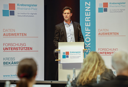 Dr. Nils Herm-Stapelberg, Abteilungsleiter für Data Science im IDG, präsentierte in seinem Vortrag erstmals den neuentwickelten onkologischen Versorgungsatlas. Der Bericht enthält erkenntnisreiche Auswertungen und Statistiken zur Versorgungssituation und Patienten Journey bei onkologischen Erkrankungen in Rheinland-Pfalz.