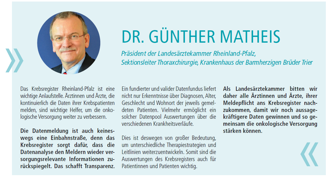 Sind Sie als Arzt im Bereich Onkologie tätig? Hier finden Sie alle wichtigen Informationen zu Meldungen an das Krebsregister Rheinland-Pfalz.