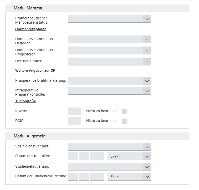 Hinweis: Module sind nur von Organkrebszentren auszufüllen