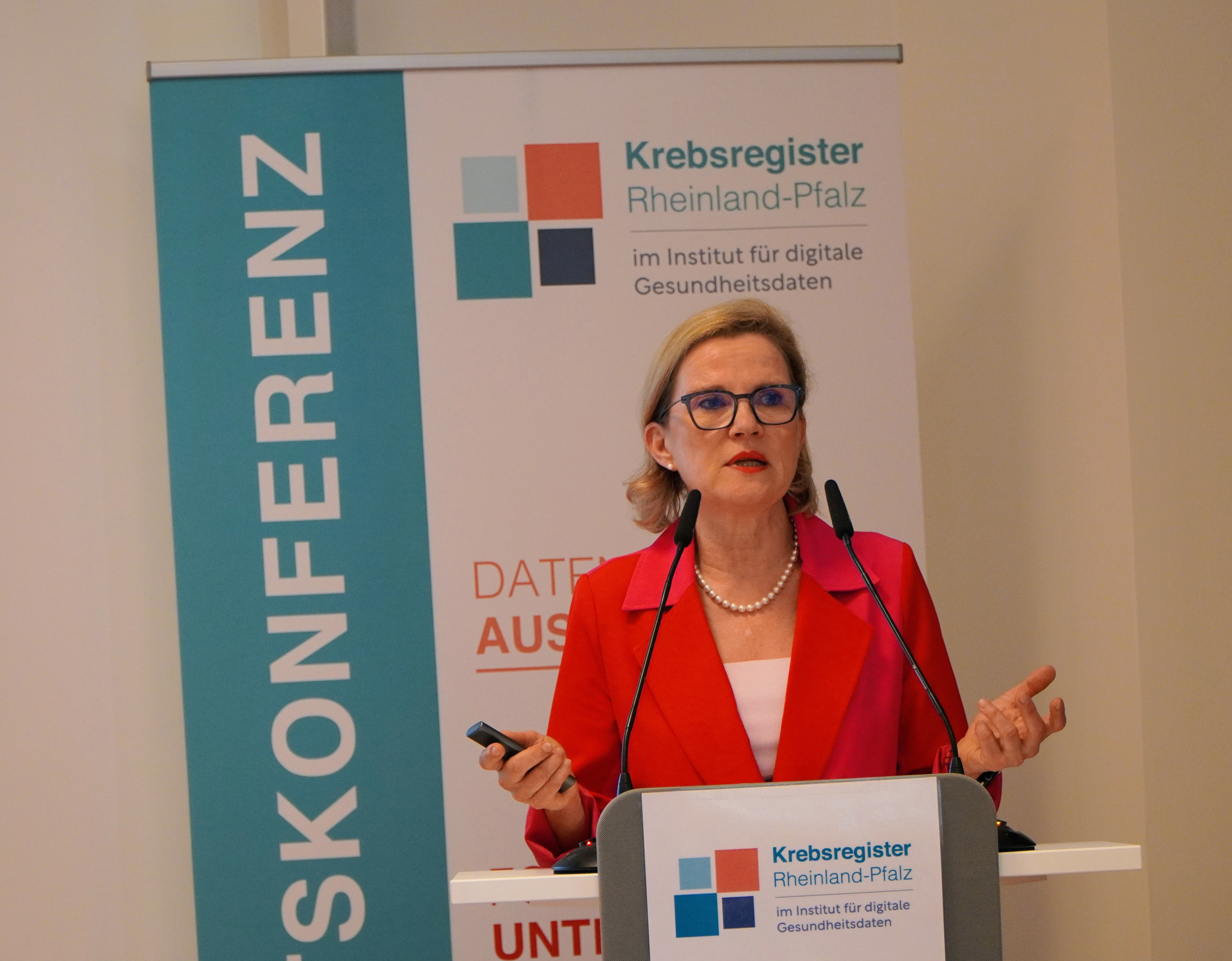 Nach der Pause präsentierte PD Dr. rer. nat. Christina Justenhoven (Leitung Datenauswertung und Reporting des Krebsregisters im IDG) die neuesten Auswertungen zu gynäkologischen Tumoren auf Basis von qualitätsgesicherten Daten aus dem Krebsregister RLP. Ihre Analysen zeigten Trends in Inzidenzen, Therapieverläufen und Überlebensraten – und unterstrichen den Wert kontinuierlicher Qualitätsmessung für eine evidenzbasierte Versorgung.